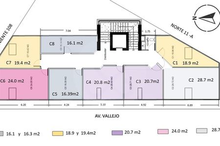 Hay oficinas disponibles en varios pisos con diferentes medidas y distribuciones.